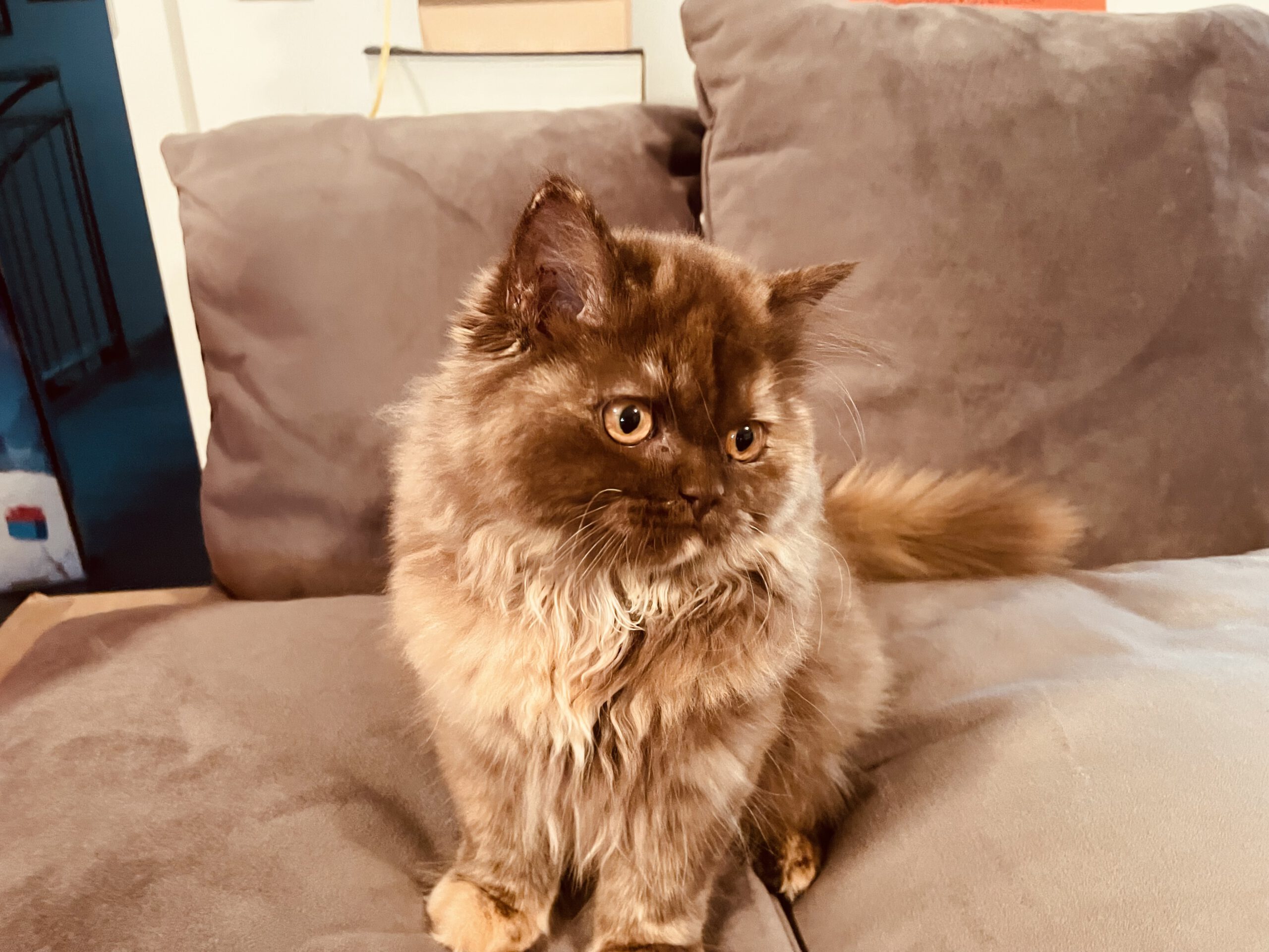 Durch die liebe Unterstützung der Cattery vom Wunderwald konnte ich mein erstes Mädchen Eloise endlich abholen. Sie ist eine sehr große, typvolle Schokoladentorte … a.k.a. Schnurrmaschine. Manchmal reicht es schon sie bloß anzukucken und sie wirft schon den Motor an.